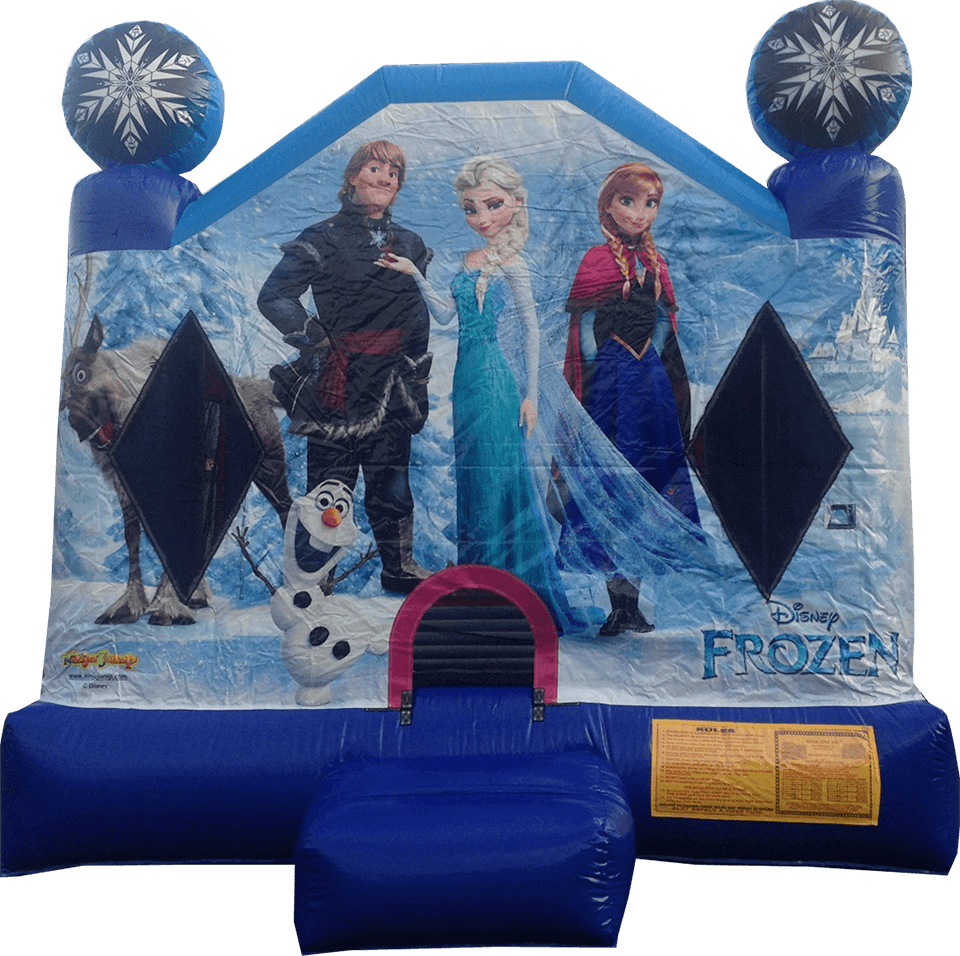 Bring the magic of Arendelle to your next celebration by inviting Anna and Elsa to join the fun with our Disney Frozen themed bounce house. This enchanting bounce house showcases vibrant graphics from the beloved Frozen movie, creating a captivating atmosphere for all your guests. With its spacious jumping area, it's an ideal addition to your little princess's party, ensuring hours of joy and entertainment. Let your child's imagination soar as they bounce alongside their favorite Frozen characters, making memories that will last a lifetime. Setup area: 17 Ft wide by 19 Ft deep by 16 Ft high Actual Size: 13 Ft wide by 13 Ft deep by 16 Ft high Monitors: 1 Adult must monitor play at all times Outlets: One 15amp outlet with nothing else running on it |