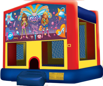 Our Girl Thing bounce house is designed with vibrant and colorful graphics, perfect for your girly girl. It offers a spacious jumping area, measuring 15 feet wide by 15 feet deep, providing a larger jumping surface compared to our standard bounce houses. This ensures plenty of room for fun and excitement. Setup area: 19 Ft wide by 22 Ft deep by 15 Ft high Actual Size: 15 Ft wide by 15 Ft deep by 13 Ft high Monitors: 1 Adult must monitor play at all times Outlets: One 15amp outlet with nothing else running on it |