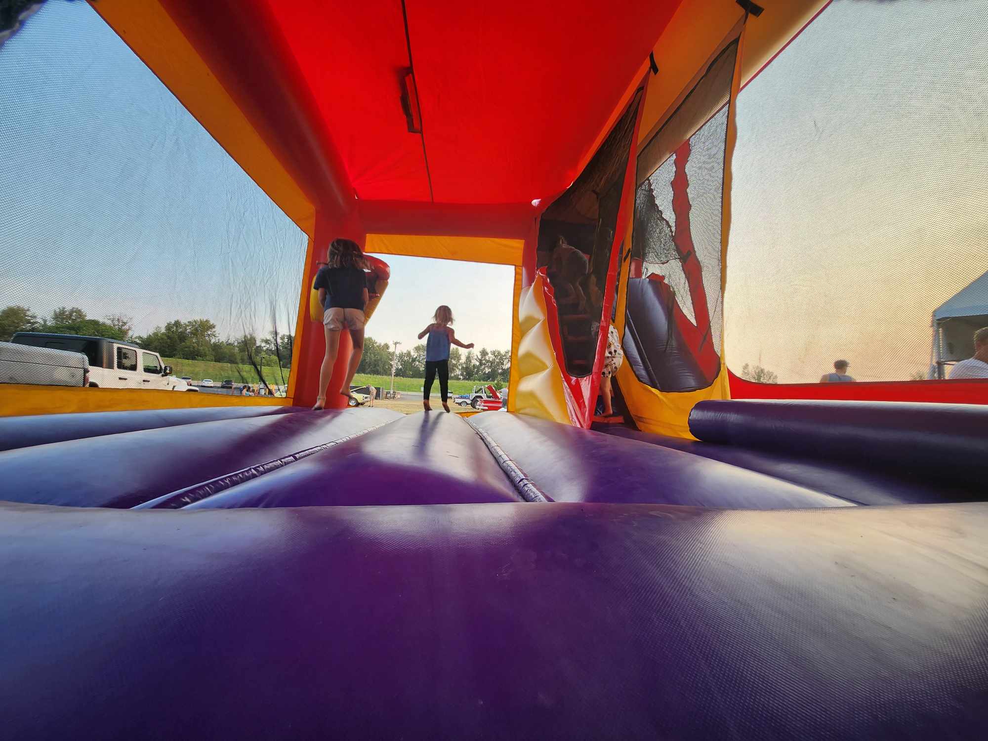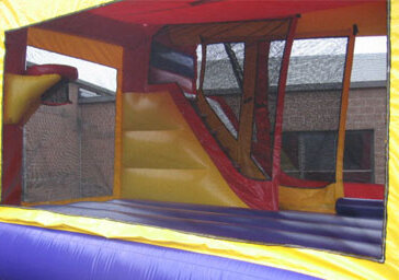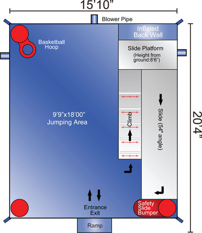 Our vibrant Modular Combo bounce house offers endless fun with its spacious jumping area, exciting slide, and built-in basketball hoop. The slide is thoughtfully designed to end inside the bounce house, eliminating the need for children to climb in and out. This feature is particularly beneficial for large events, as it simplifies supervision and enhances safety. Let your kids enjoy hours of entertainment while you enjoy peace of mind! Actual Size: 16 feet wide by 20' 4" feet deep and is 15 feet high Setup Area: 19 feet wide by 24 feet deep by 16 feet high Monitors: 1 Adult must monitor play at all times Outlets: One 15amp outlet with nothing else running on it |